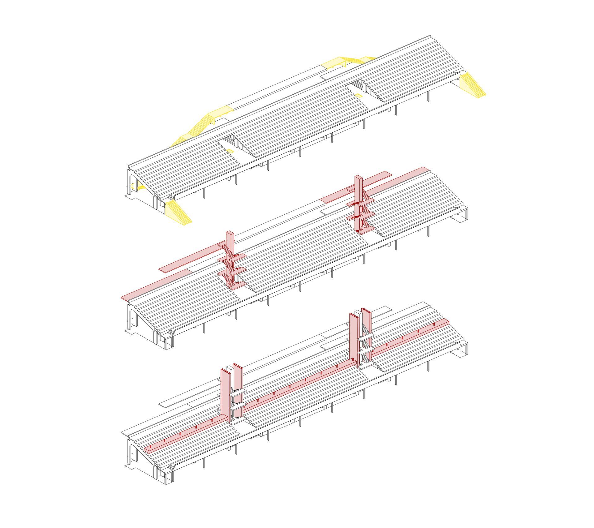 | Axonométries bureaux - démolition et projet