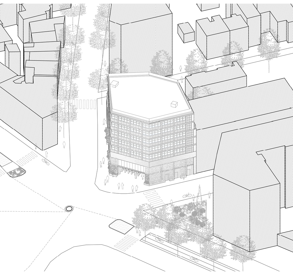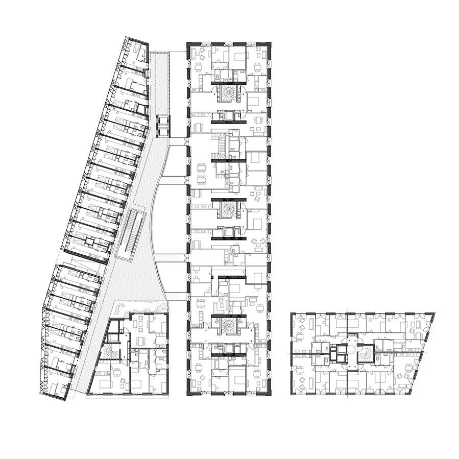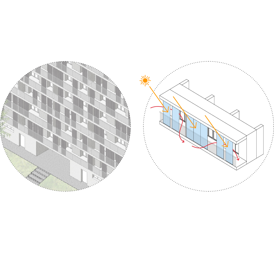 En partie situé au-dessus des emprises ferroviaires, le terrain représente une opportunité rare d’extension du tissu urbain. Par sa forme unitaire et son rationalisme, sur 82 mètres de longueur, le projet renforce les structures urbaines existantes et préserve des percées visuelles vers son environnement. Les espaces communs sont conçus comme des lieux de rencontre et de convivialité, articulant intimité résidentielle et urbanité du quartier.