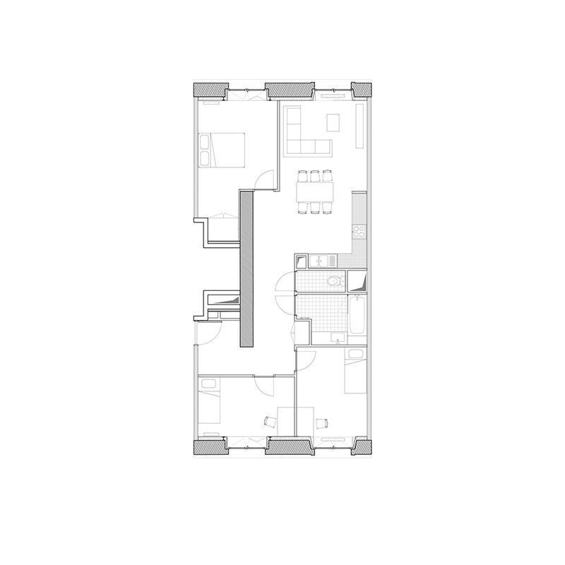 11/11 Typologie 05 | Collocation deux chambres pour quatre femmes, salle d'eau et WC mutualisés