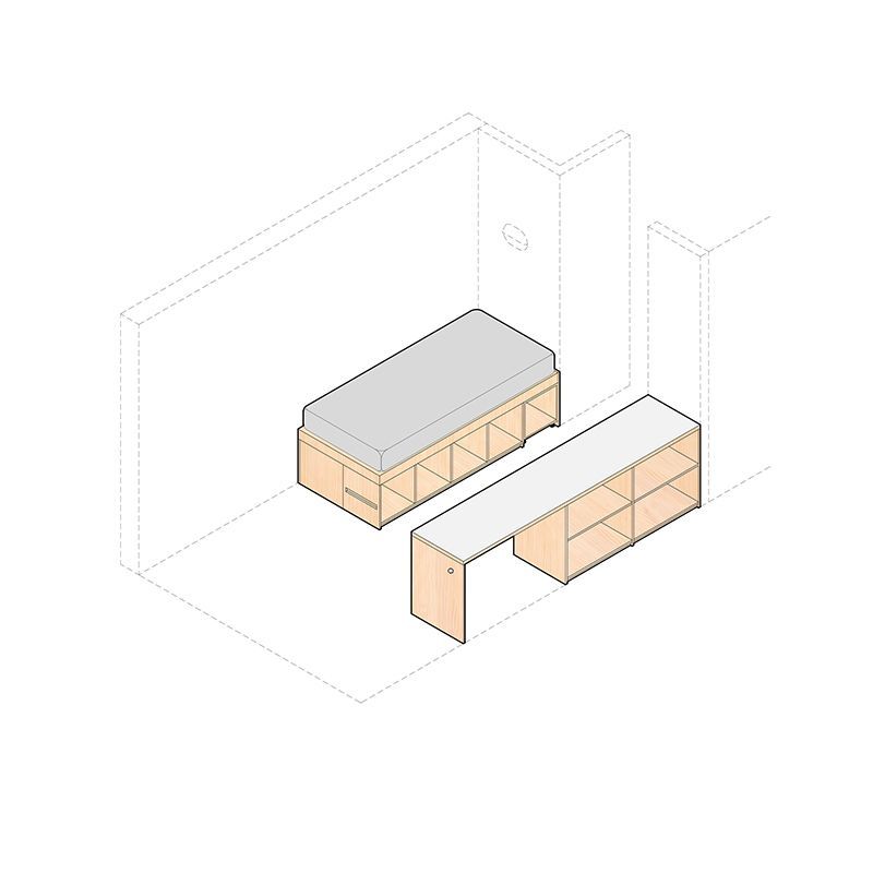 4/9 Mobilier Caserne de Reuilly | Lit chambre étudiante