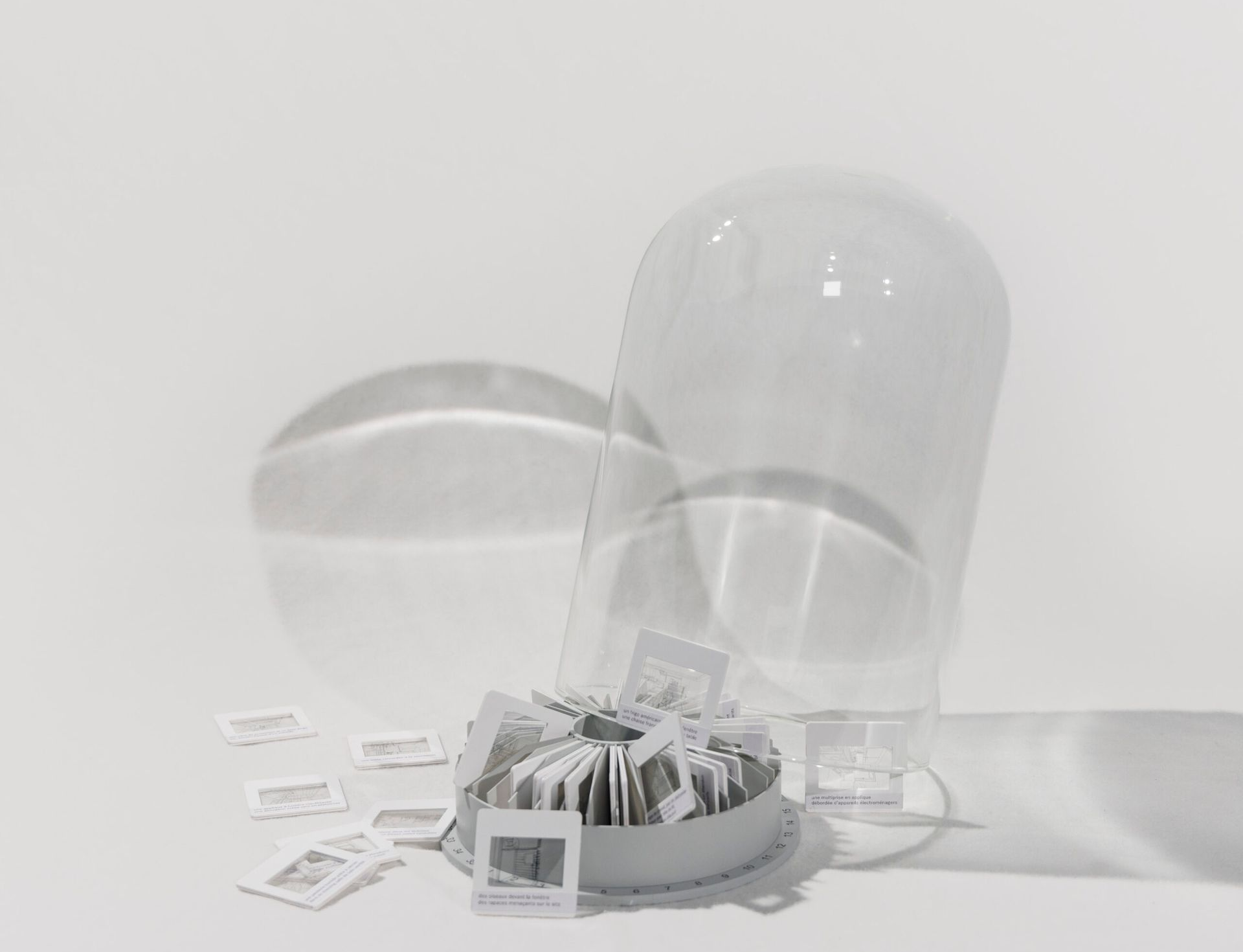 Dans le cadre de l'exposition "L'architecture manifeste", une série de 35 croquis choisis d’intérieurs prend la forme d’un carrousel de diapositives. Le format 35mm préserve l’intimité des foyers. S’immerger dans l’installation implique alors un regard attentif et patient comme tout préalable.